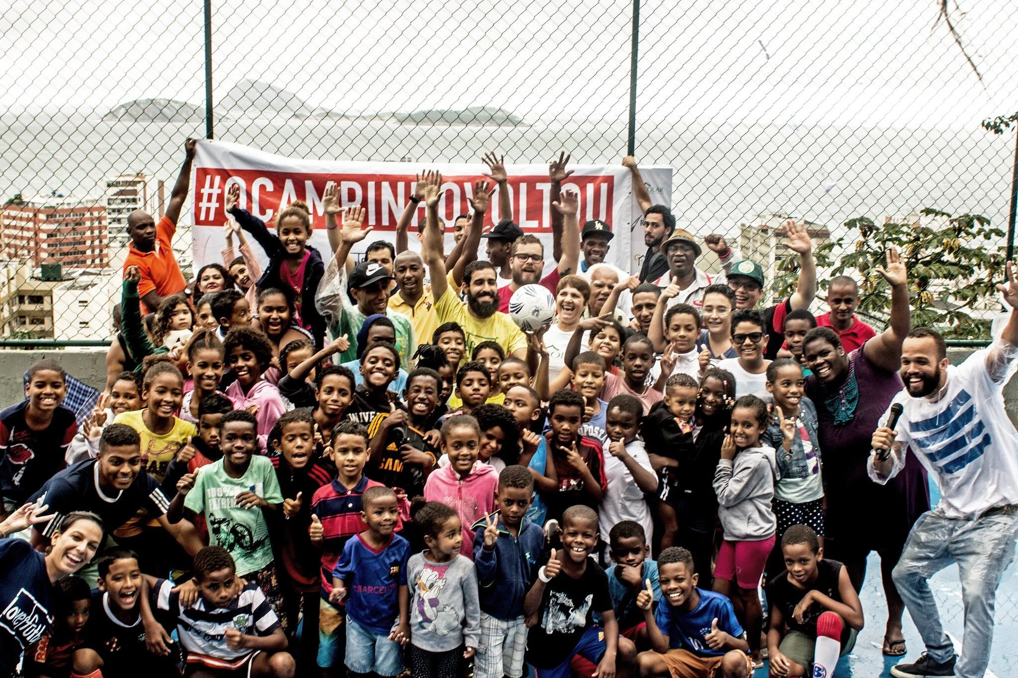 Construido por primera vez por los vecinos hace décadas, la cancha de Cantagalo, hogar de una de las vistas más hermosas de todo Río de Janeiro, fue un importante lugar de encuentro para la comunidad. En 2009, la red protectora alrededor de la cancha fue destruída, dejando el espacio irreconocible desde sus días de gloria cuando jóvenes y viejos jugaban al fútbol durante horas. En el transcurso de seis meses en 2016, Cantagalo se unió para rescatar su cancha y proporcionar un lugar seguro para jugar nuevamente. La cancha ahora tiene una superficie nueva y brillante con una pared circundante, completa con iluminación y redes de protección, ¡una verdadera fiesta para los ojos y los futbolistas que pueden jugar allí una vez más! Más que un lugar para jugar, un jardín en funcionamiento toma forma alrededor del campo, junto con instalaciones de arte de graffiti y puntos de acceso inalámbricos.